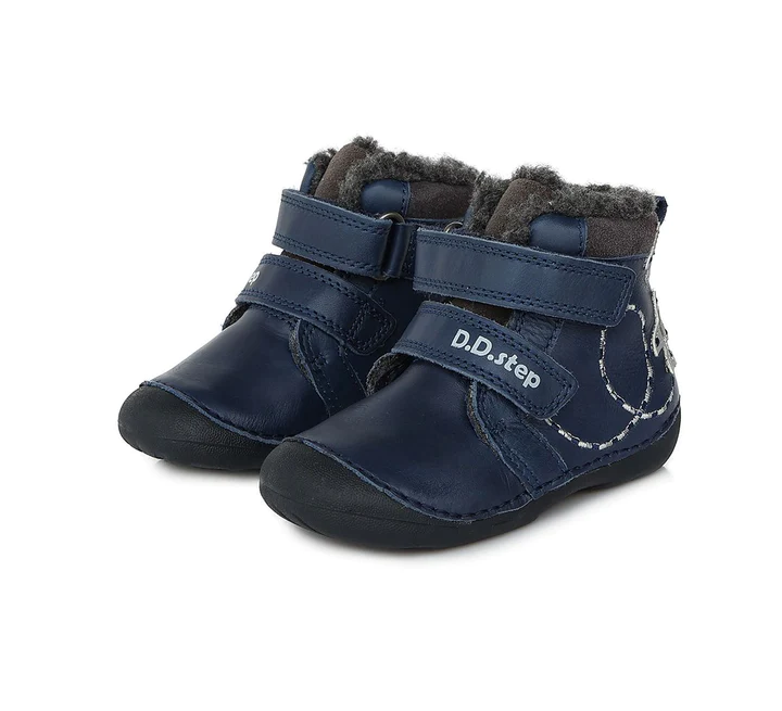 D.D.Step fiú téli cipő. Kék színű,repülő díszítéssel.